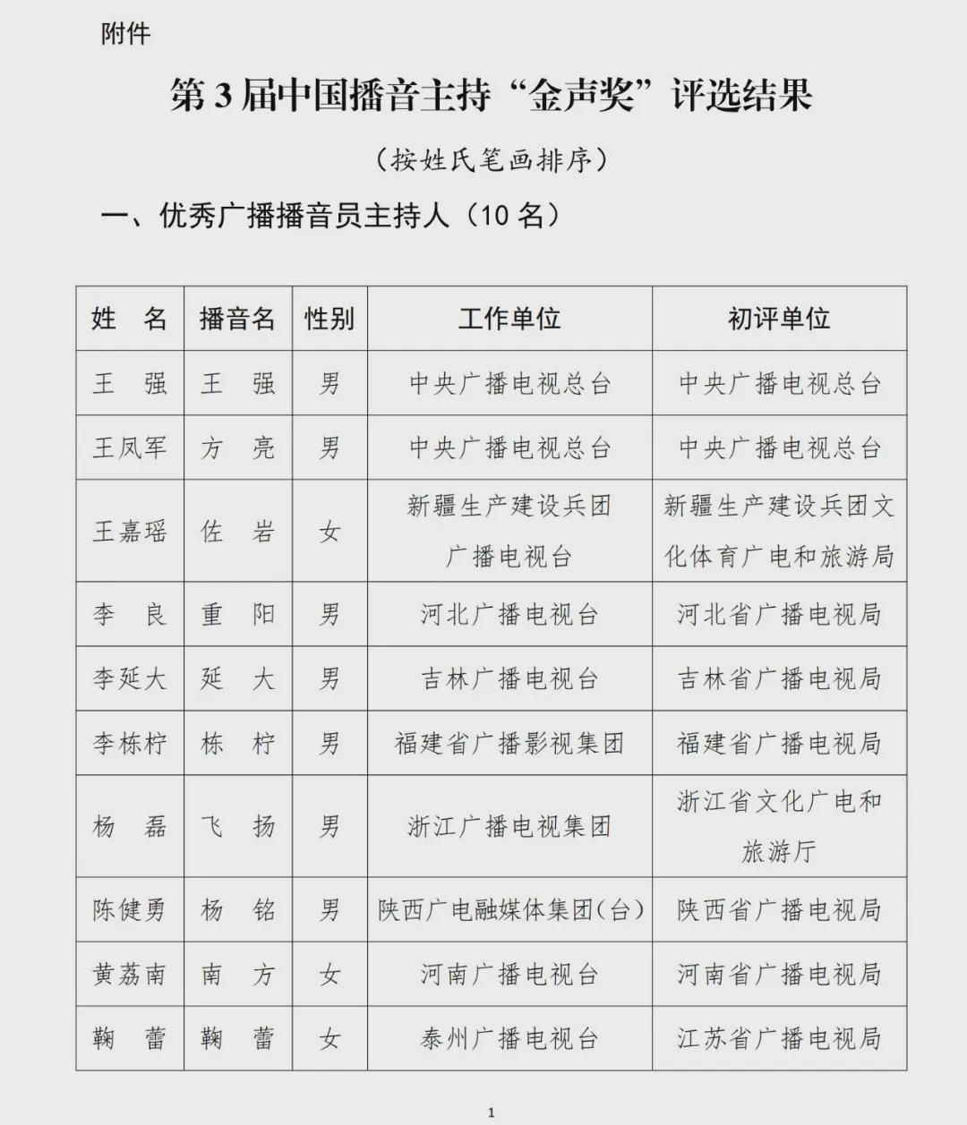 附:第3届中国播音主持“金声奖”评选结果