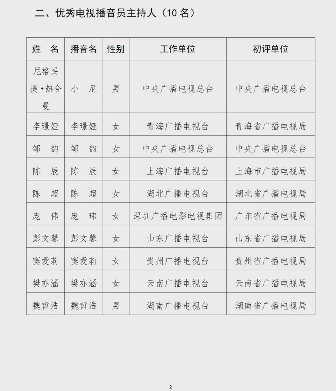 尼格买提获评优秀电视播音员主持人。